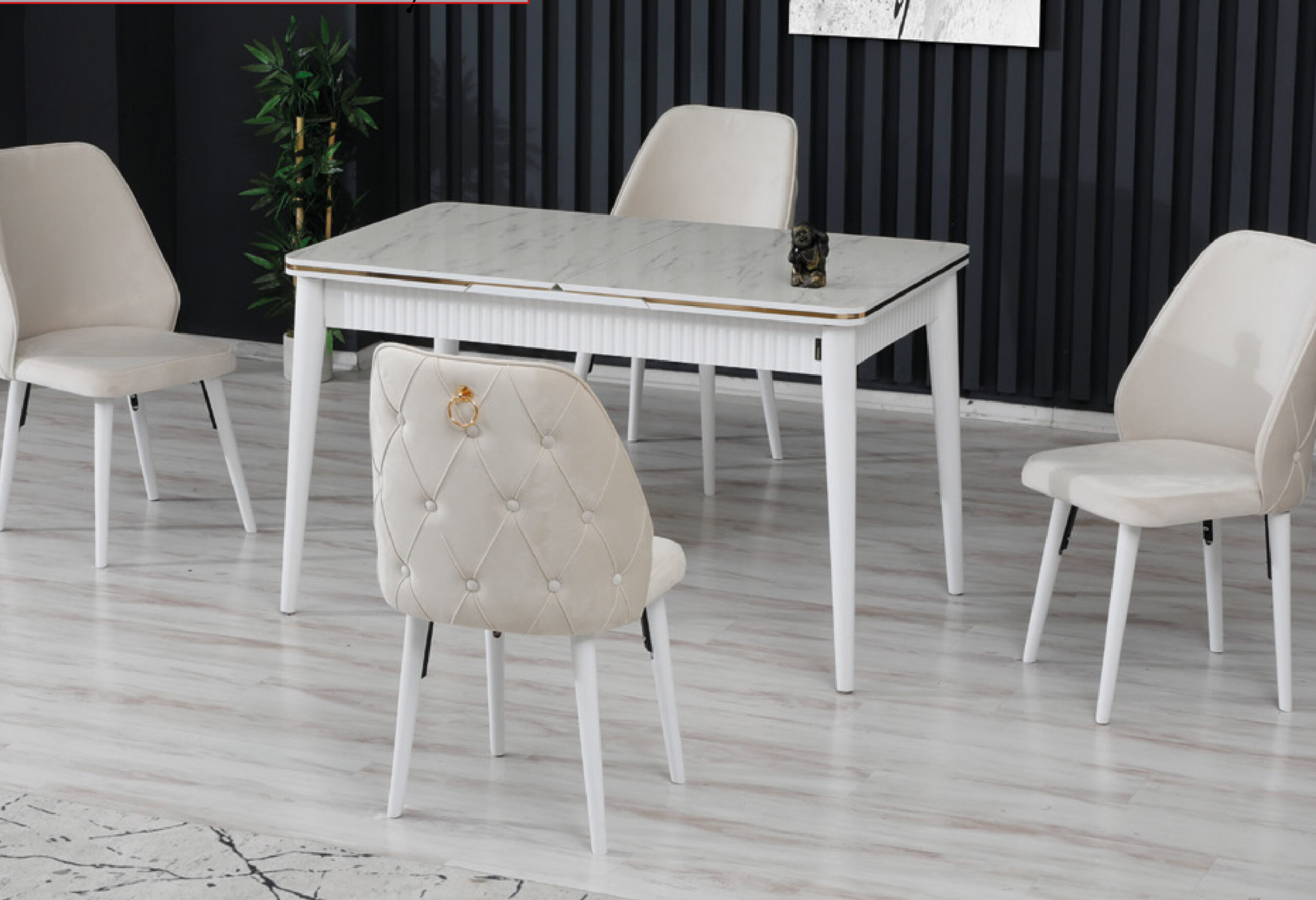 Marmo Lark Panel Masa Krem Sandalye